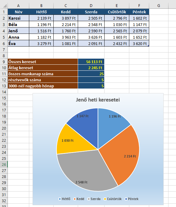 ÁTLAG, DARABTELI, DARAB, SZUM, DARAB2